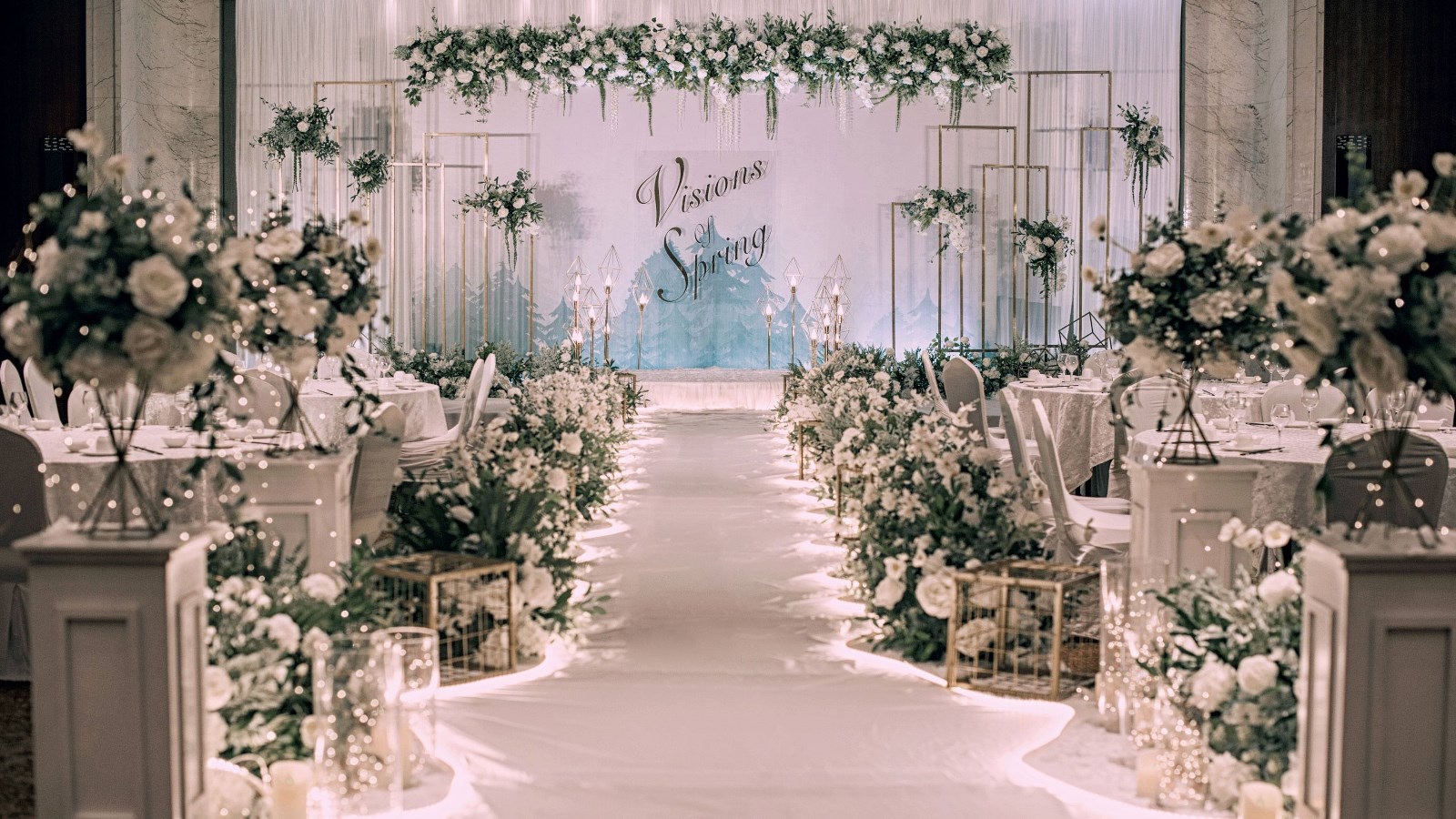 上面说到红色是传统婚礼中只属于新娘的颜色,那白色也就是西式婚礼中专属于新娘的颜色了。在现代西式婚礼中,新娘一般都是着婚纱,而婚纱一般都选用的是白颜色。如果伴娘再选择白色礼服的话,也不免又喧宾夺主之意。此时,伴娘可以选择与白色相近但较为淡雅一些的颜色,例如香槟色、浅黄色、浅蓝色之类的。较重要的是要与婚礼的风格达成统一。
