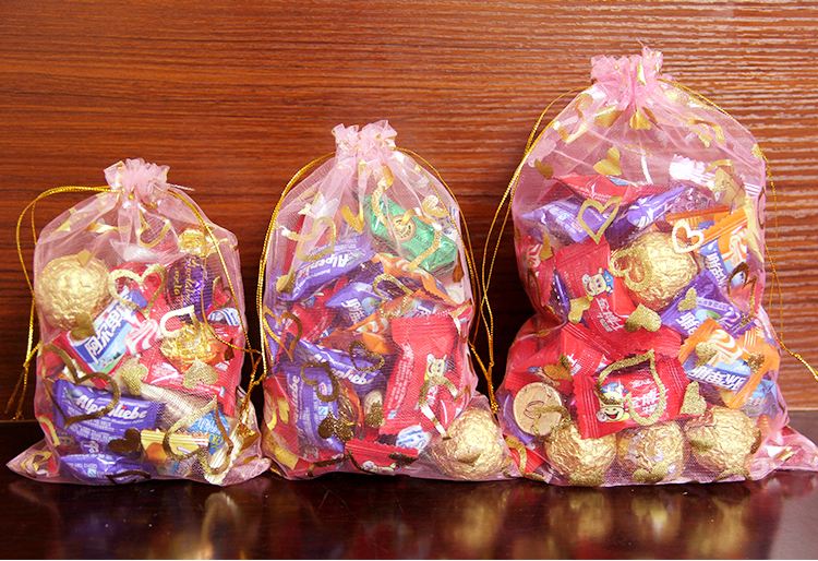 首先新人可以先把可能用到的喜糖大体划分一下。比如有接亲时散发给邻居、司机等人的喜糖,有婚礼现场送给宾客的喜糖,还有婚礼后派发的喜糖等。前者可以选择颜色漂亮的水果硬糖;后者可以选择巧克力、牛轧糖、太妃糖、酥糖、水果等。其中,巧克力是婚礼中较为流行的喜糖;牛轧糖和太妃糖适合西式婚礼;酥糖则尤其适合中式婚礼;水果糖相对价格较低但色彩漂亮,可以作为喜糖中的点缀。