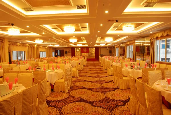 酒店设施:3个婚宴厅,7套婚宴菜单,10-50桌婚宴席