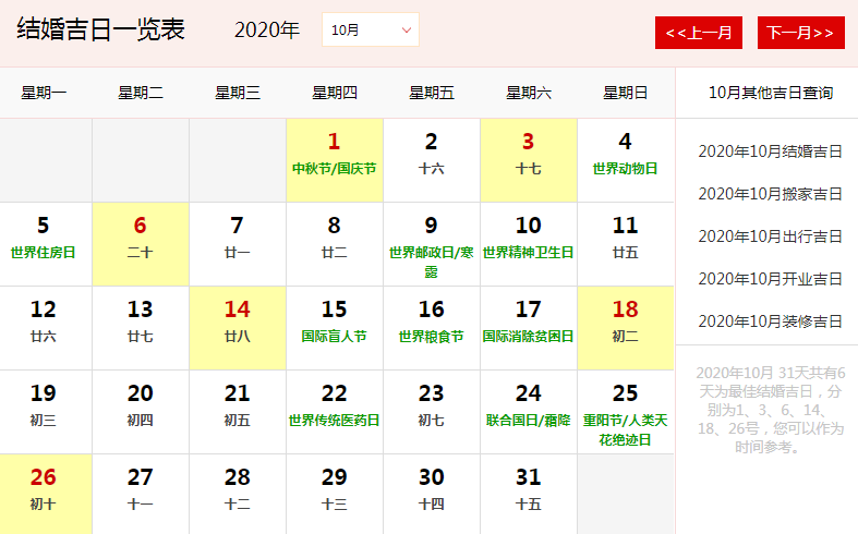以上给大家介绍了2020年11月结婚吉日,希望这个2020年11月结婚吉日一览可以给大家在选择11月份结婚吉日上一些帮助!很多人认为,结婚吉日的选择关乎婚后的日子的好坏,因此在选择的时候更要慎重哦!