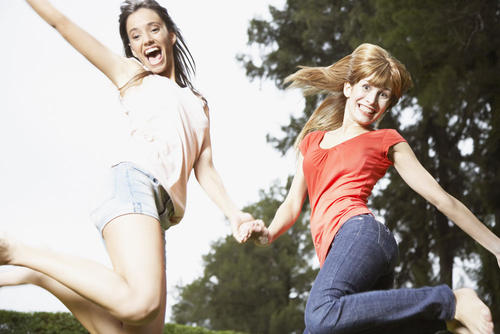 8、听到这个好消息,姐妹俩手拉手跳着,笑着,花裙子迎风摆动,活像一对活泼愉快的花蝴蝶。