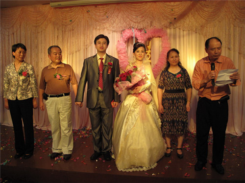 4、春风和暖舞祥瑞,张灯结彩迎新人。新郎玉树临风好,新娘百里挑一俏。
