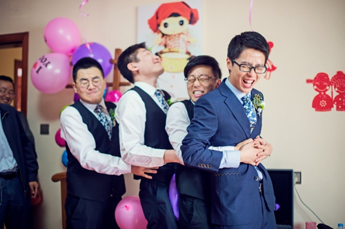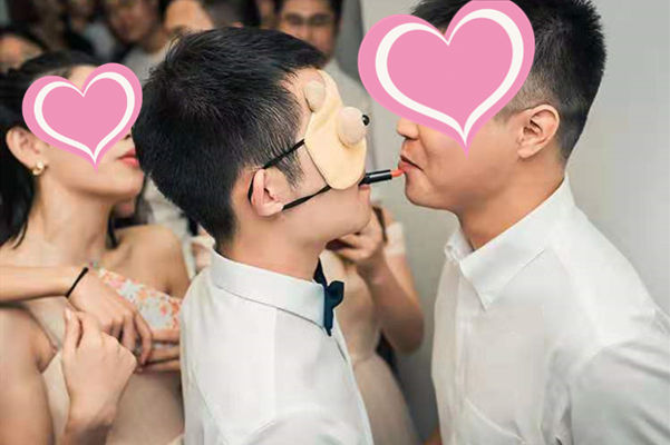 现在很多新人结婚都会想着如何让婚礼游戏好玩,可以选择两个男生,两个女生一起,男生和男生,女生和女生,准备好的气球,看谁先把气球夹破,两个人面对面,把气球放胸口双方一起用力,先破气球者就赢。