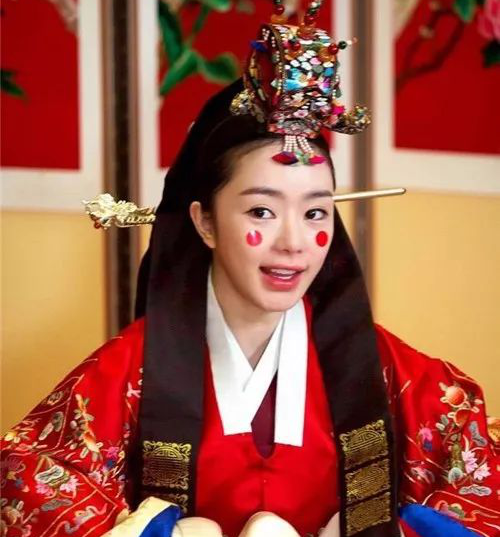 3. 韩国传统婚服比日常穿着的韩服华丽得多。新娘是短上衣园衫,戴发髻,龙簪上垂着前缀和飘带。新郎的穿戴是裤子,短衣背心,戴纱帽冠带,穿木屐。衣服上的传统图案通常代表两姓之合、万福之源。