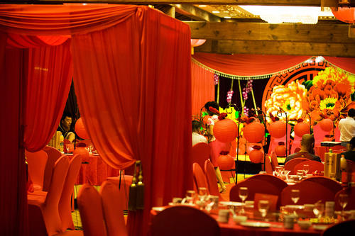 这儿要提到的小物件,是指婚礼现场一些小的装修品。例如餐桌上、报到桌上等,在装点装修婚礼的地方,这些物件都将很多选用赤色基调,将整个婚礼打造的严肃高雅,将传统婚礼的赤色运用到位。