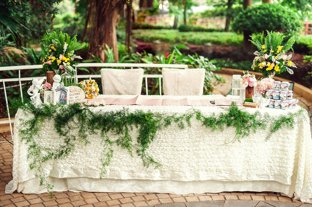 薄纱的梦幻,蕾丝的可爱、缎带的柔滑……用不同质地的面料布置的签到台会起到不同的效果。最好根据婚礼主题或婚礼风格档次来决定签到台的布置,否则风格迥异的签到台太漂亮会显得喧宾夺主,太花俏又显得不伦不类。