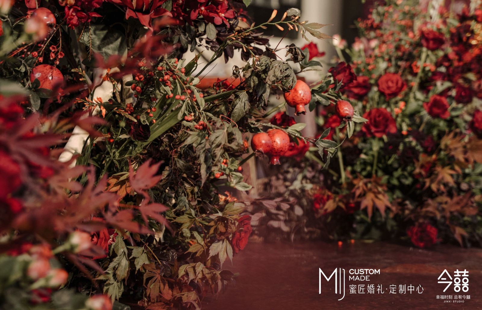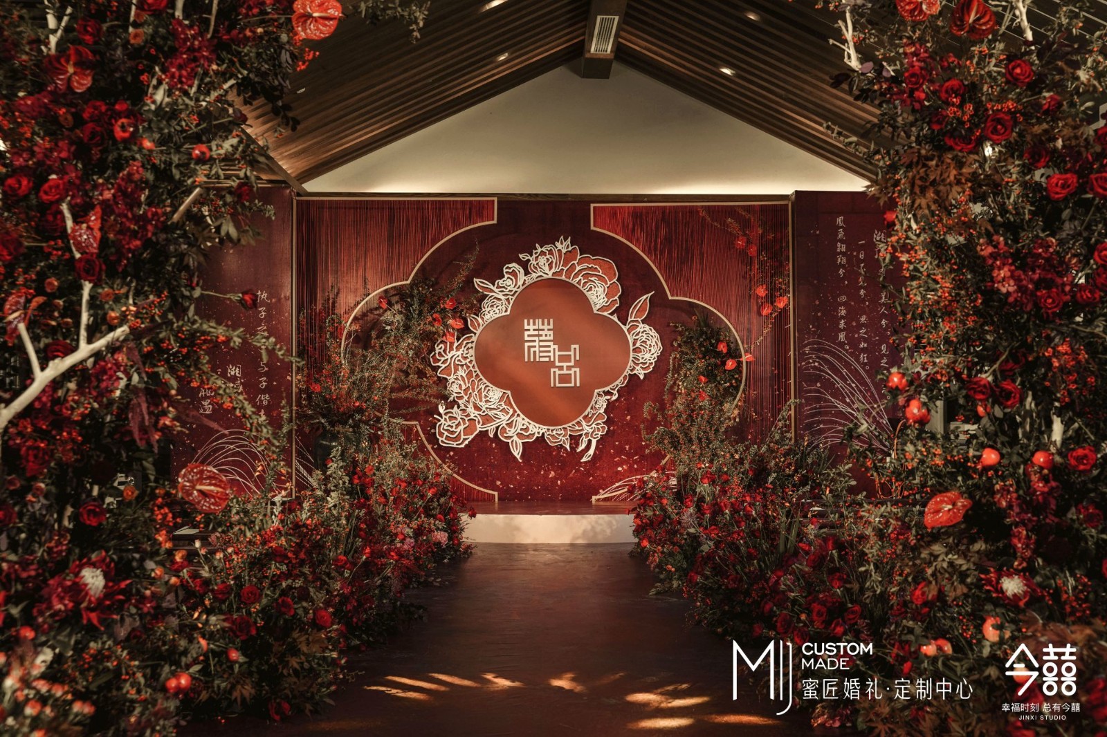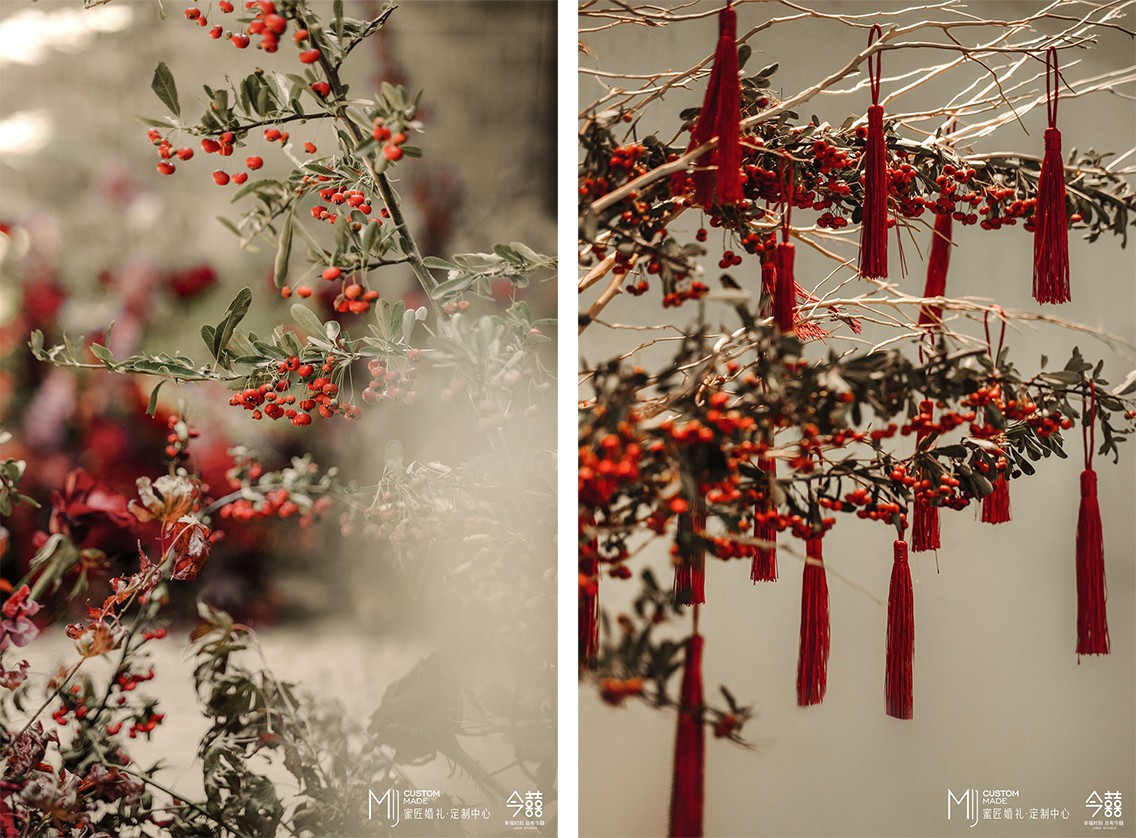 婚礼上用到的元素比较传统,多以中式元素和自然元素为主。