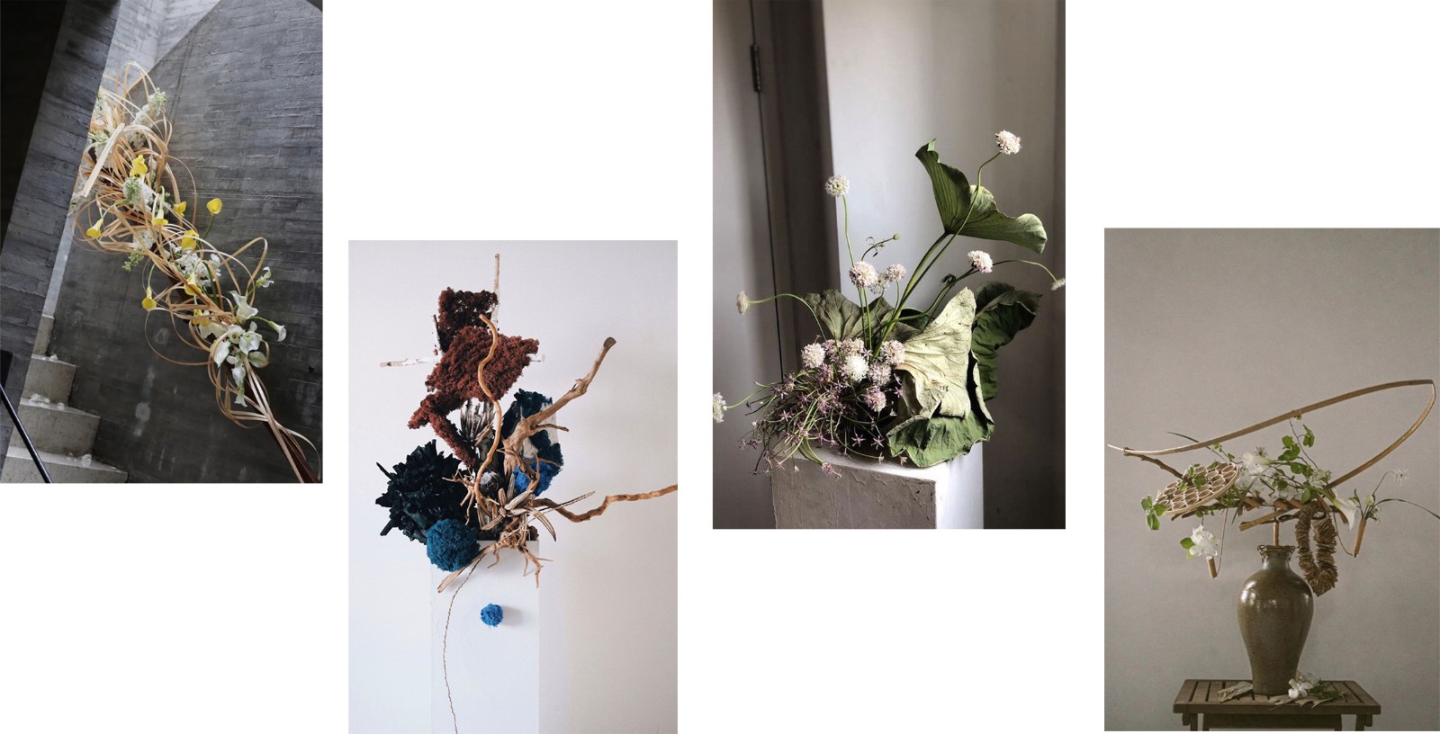 现场的花艺部分也运用了竹条这种有线条感和原生态的材质。
