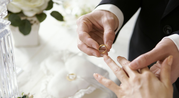 新郎新娘互换戒指的场景一定是整场婚礼最经典、最值得被纪念的一幕。为了这一刻的到来,这两位新人不知等了多久,不论有多难有多苦,新人们最终还是挺了过来。最终他们给彼此最爱的人戴上了婚戒,他们按照自己所想嫁给了爱情。