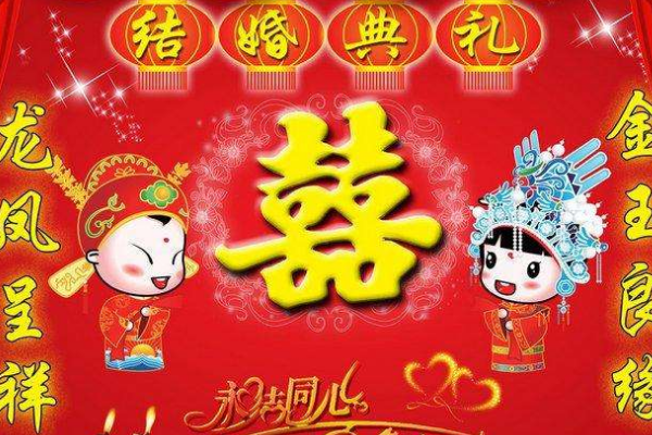 22、 在你们大喜的日子里,送上一份祝福:张灯结彩新婚际,鸿雁双飞齐比翼,花年共结连理枝,丽日莲开并蒂时。来年喜笑得贵子,夫妻恩爱百年期!