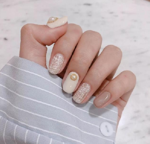 这款编织小香风美甲我还蛮喜欢的,它也是2020年最流行的美甲款式之一,因为今年流行的元素在这个款式上都全了,看到它是不是想到了冬天的毛呢外套呢~颜色简单,款式却又很特别,莫兰迪主色调配上格纹,超适合温柔优雅的姐妹~最后再在指尖上点缀一颗珍珠,看着气质满满,温柔又好看呀~