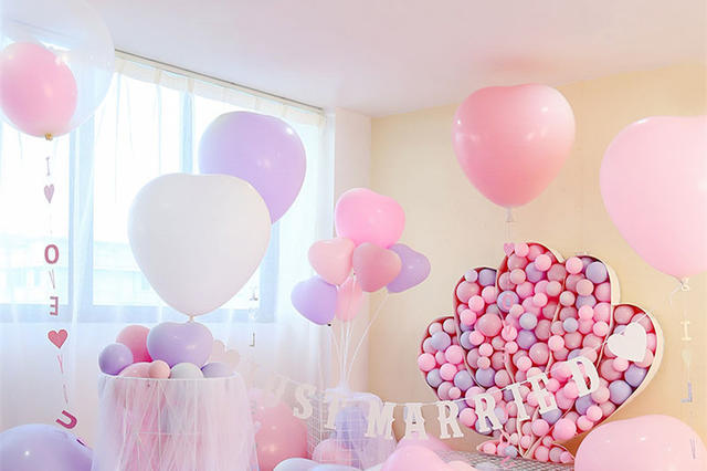 2、在布置婚房时,气球的颜色不宜过多,尽量不要超过3种。大家可以给气球进行双色搭配,比如说粉色+白色等等,打造出层次感。气球的颜色可以色彩艳丽,不要购买黯淡无光的气球。我们在用气球布置时,要有主次之分,不要随性的乱装饰。