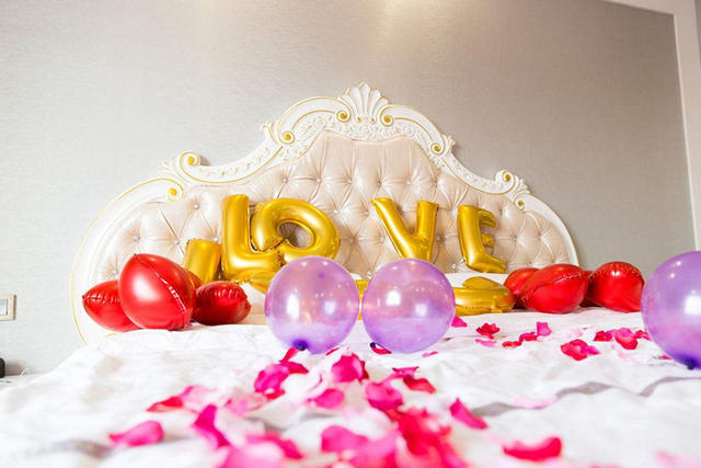 3、除了可以使用气球布置之外,我们还可以使用鲜花、囍字、蜡烛、小彩旗、灯串、照片等作为装饰品,给婚房添加浪漫温馨的氛围。比如说气球可以和鲜花、囍字、照片一起搭配使用。装修婚房前大家最好先有一个计划,以免婚房太过花俏。