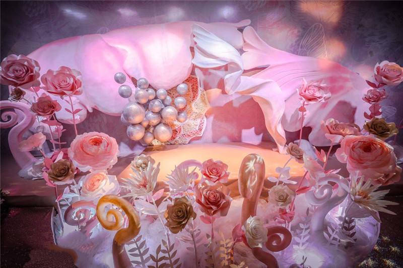 粉色代表的是俏皮可爱,一般有着童话梦想的女生都会选择这样的色系作为自己婚礼的主色系,全场粉嘟嘟的,非常温暖可爱。