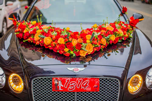 一辆主婚车、n辆副车。记得与司机确定何时去婚庆扎花车,何时到新郎家。