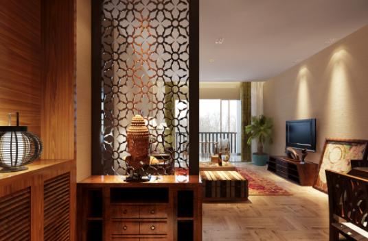墙距离门口稍远,可以从墙的两侧进入室内,或者一侧进入室内,可以考虑做个玄关柜。玄关柜的设计不要和地面及顶面的装饰设计太雷同,可以稍微带点个人特色,让人一进门,不容易被忽略,而且让人眼前一亮的感觉。