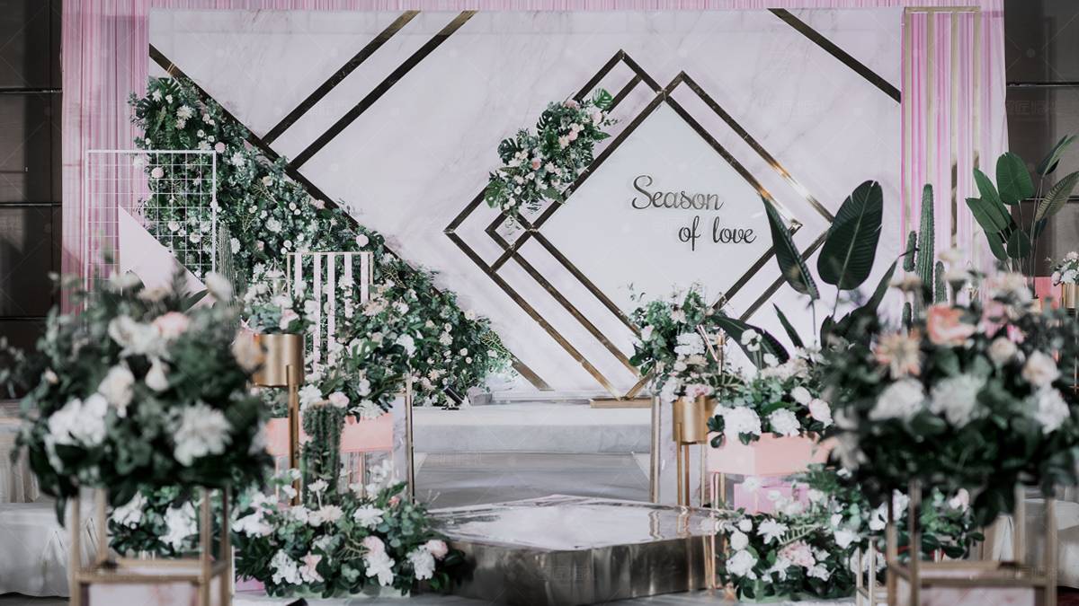 舞台是婚礼中的重中之重,舞台背景是展示婚礼主题的地方,同时也是较吸引宾客目光的地方。一般都是用新人的婚纱照或婚礼主题名加上鲜花、纱幔等装饰而成,不能太单调,这样无法体现新人的婚礼风格,但也不能太花俏,这样会抢了两位新人的关注度。