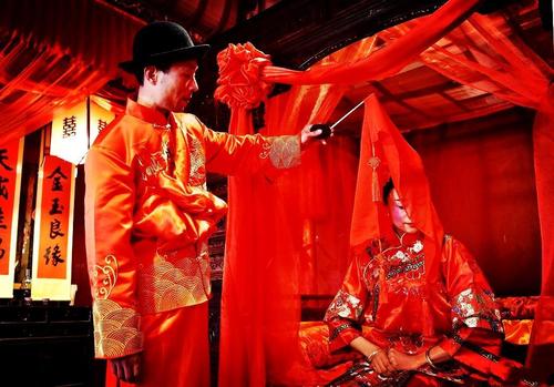 在山东地区还有这样的结婚习俗,婚房里面的箱子、柜子必须堆上硬币,寓意着富贵满堂。新人到新房合照之后,需要吃一些花生,寓意着早生贵子。