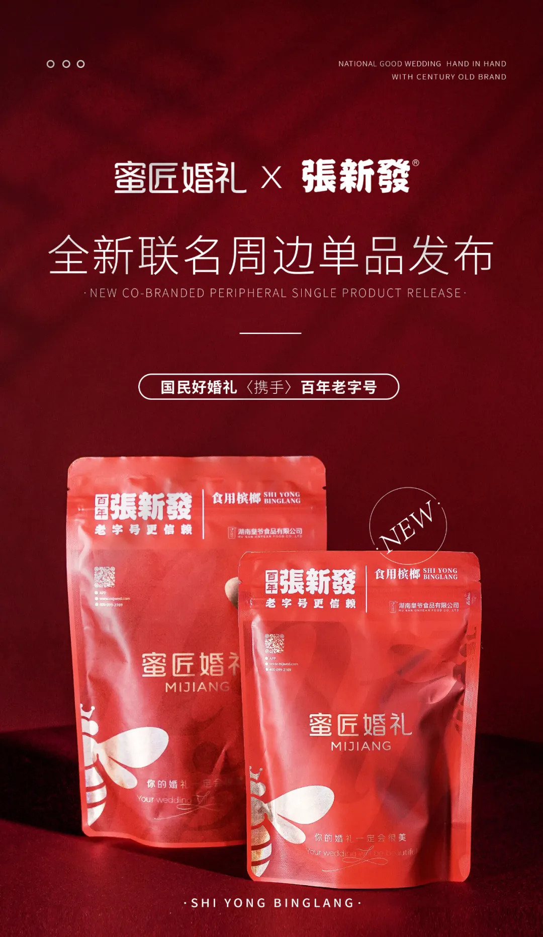 蜜匠婚礼与张新發槟榔,一个是婚庆行业的佼佼者, 一个是槟榔行业的著名品牌,他们的联名会碰撞出什么样的火花?