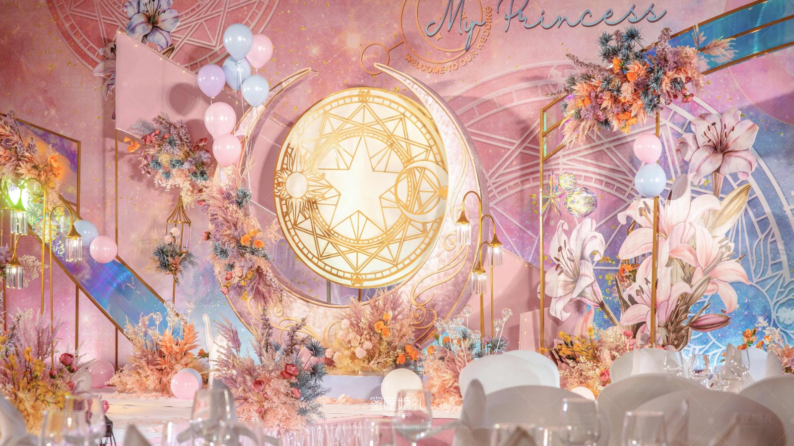 灵感来源于90后经典动漫《百变小樱》与《美少女战士》,以柔美梦幻的马卡龙色系为主色调,融合精灵萌宠与星星魔法阵等元素,为遗落凡间的公主搭建一个召唤王子的舞台。