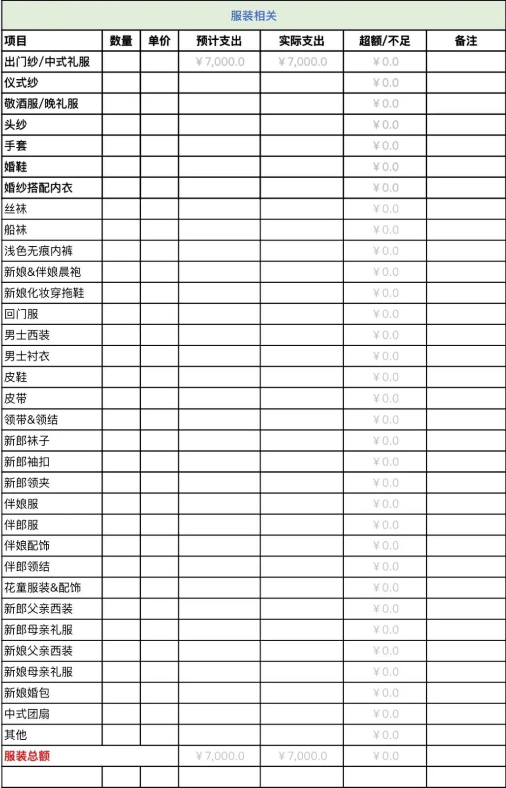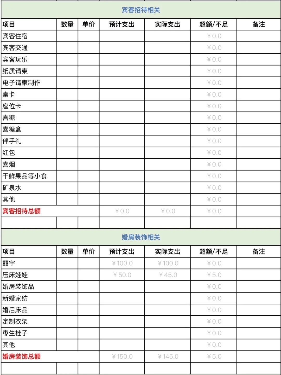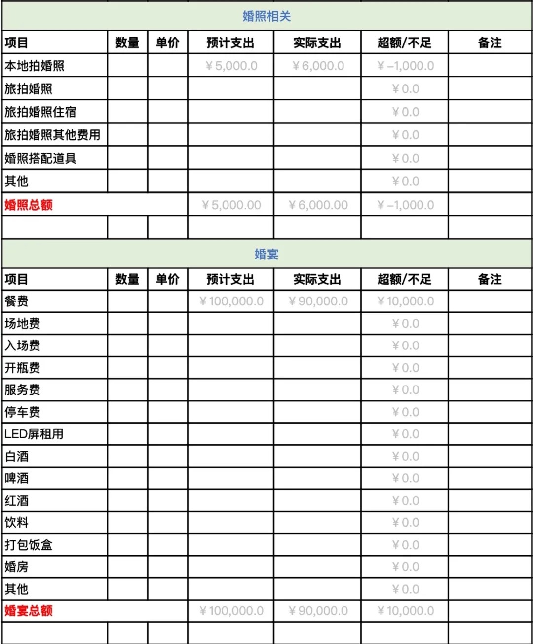 这只是一个预算模板,大家的情况都有所不同,可以根据实际情况进行调整。