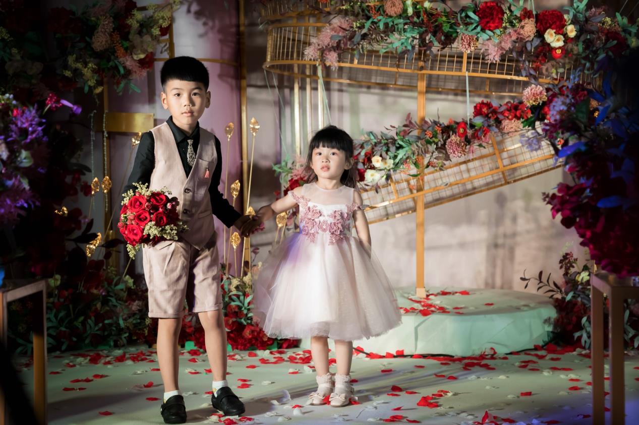 小朋友的天真无邪最能打动人,婚礼上增加一些和小朋友的互动,如,小花童送戒指,小朋友的表演等,会让婚礼变得特别有意思。