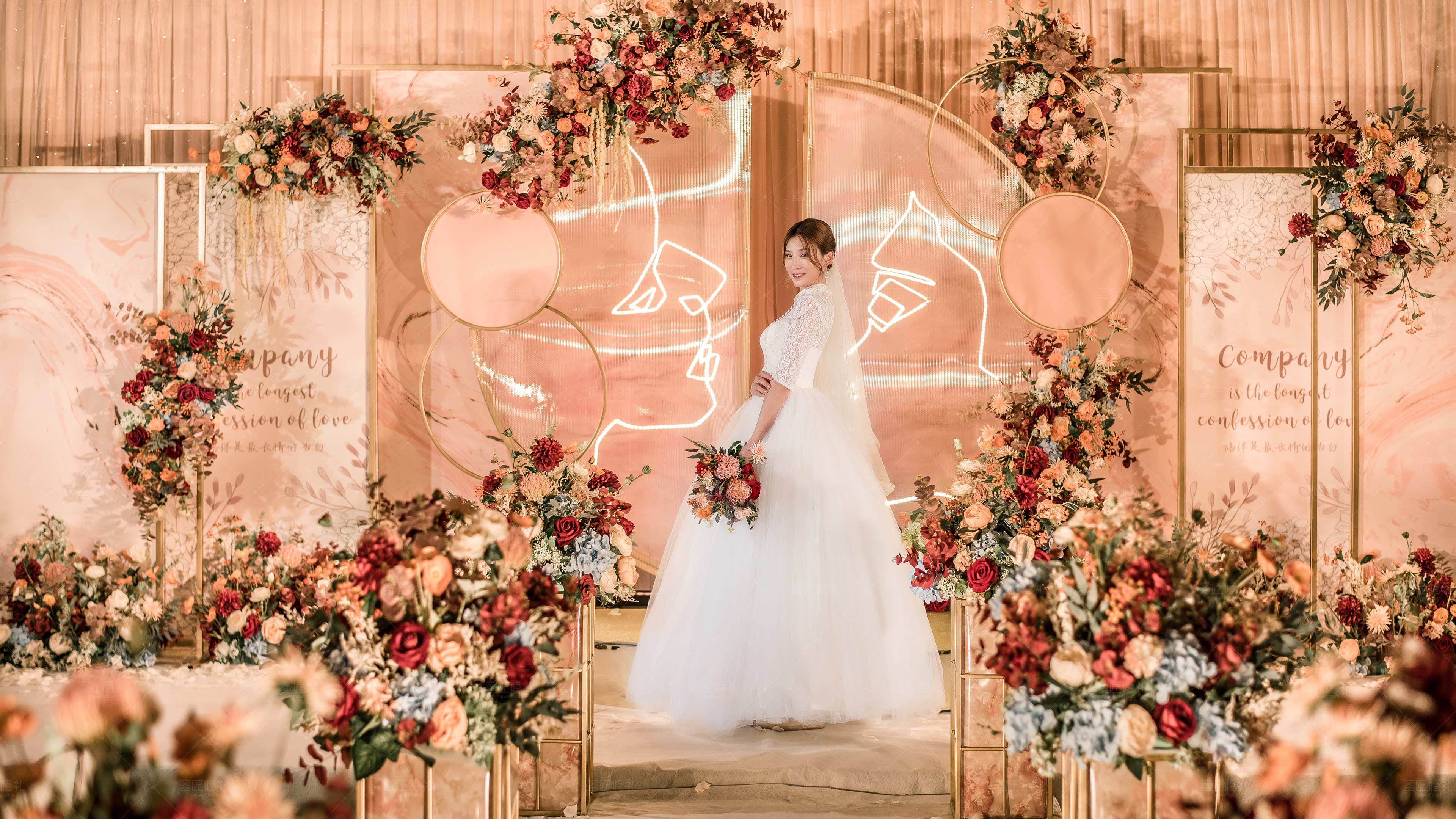 整场婚礼以深豆沙色与浆果红的温柔撞色中再以金属质地配色点缀其中,张弛之中打造一个柔和且独立的婚礼空间。别致质感而又不失浪漫温情,拉开了如电影唯美诗意的篇章,彰显独特的高级感。