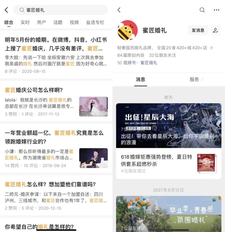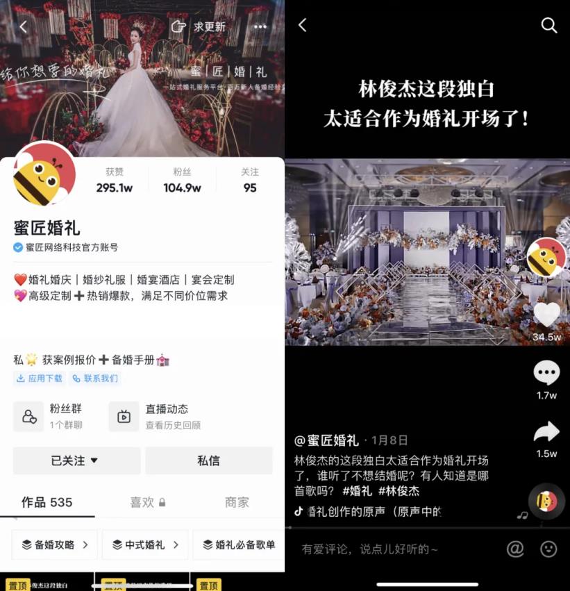 对此,蜜匠的解决方法是,帮助婚庆商家搭建线上体系,通过流量投放与内容推广,实现成本可控的精准高效的获客。