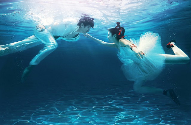 在水下拍婚纱照不一定非要去湖边或者海里,在专业的泳池里面拍就可以,提前约好场地,然后选择一个泳池来拍摄,在正午时分的时候,水下的光线是特别充足的,水底的光感也是较美丽的时候,如果要拍水下婚纱照的话一定要选择这个时间,拍出来的效果才是较唯美的,很浪漫。所以说时间很重要的。