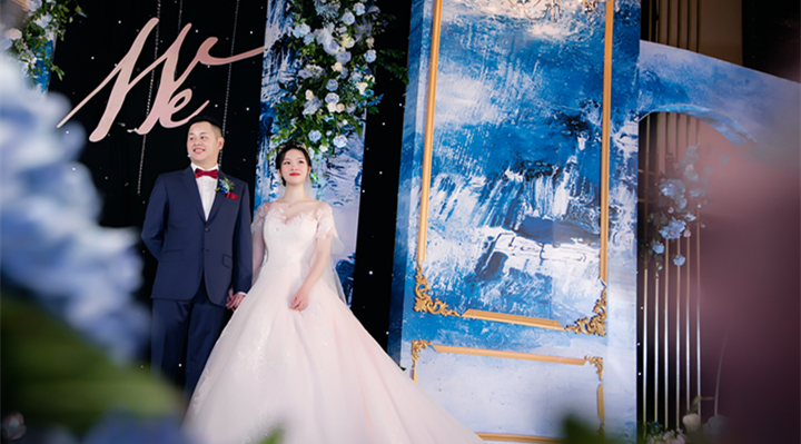 灯光下的蓝色婚礼,浪漫又纯净