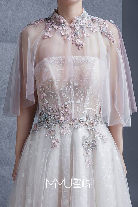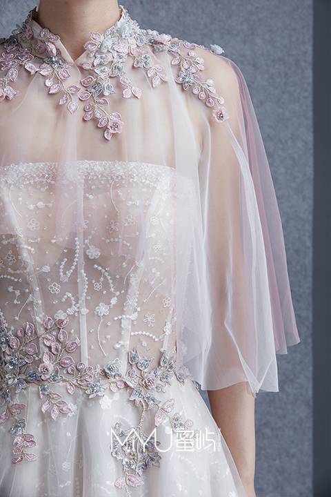 莫兰迪色轻盈抹胸裙,从设计到剪裁,轻盈清透充满层次感,携着浪漫唯美的气息优雅而至,搭配着立体花朵小披肩,集各种仙气于一身,栩栩如生。