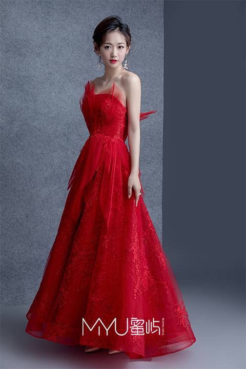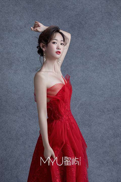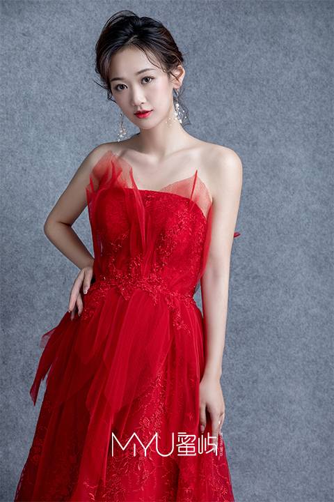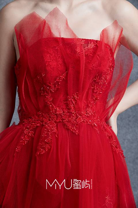 红如烈火般的薄纱裙,腰间蔓延着手工缝制的立体钉珠,犹如烈火燃烧般惊艳,浪漫与狂热,让人过目不忘。