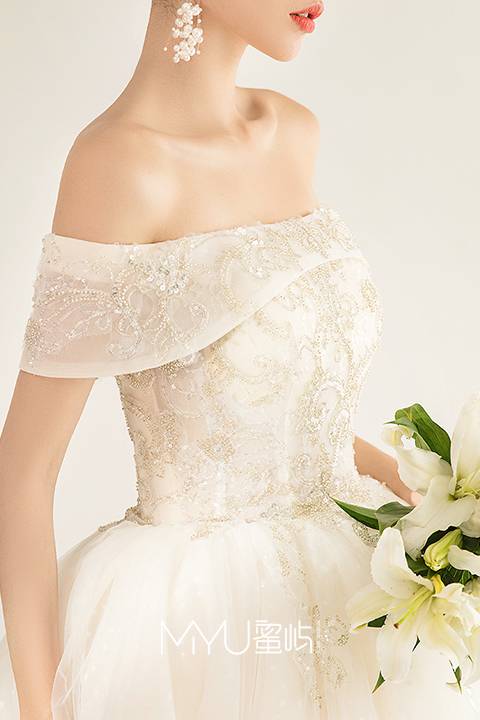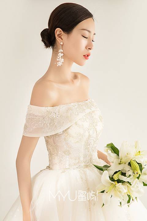 精细蕾丝刺绣亲吻白纱,摒弃多余的繁杂装饰简洁而不失精美,高级感油然而生