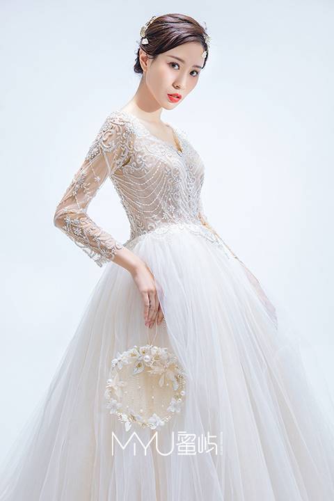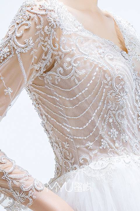 法式重磅蕾丝长袖与高阶手工刺花结合花纹细节营造出内在的精美与繁复,让优雅气质得以升华