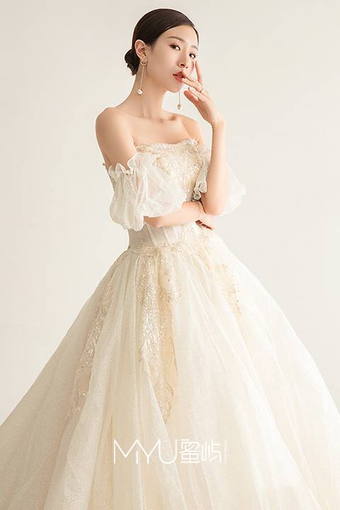 胸口亮片刺绣赋予了独特的魅力宫廷花苞袖与公主大蓬裙,让仙美全面升级