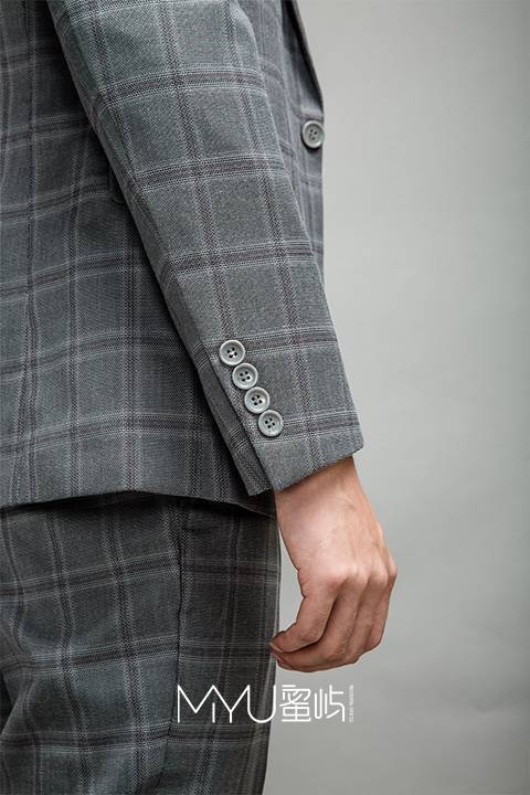 西服:平驳领+单排一粒扣+袖口四粒扣马甲:标准单排五粒扣西裤:小直筒