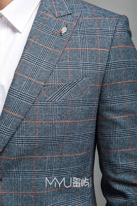 橙灰格单排二扣套西