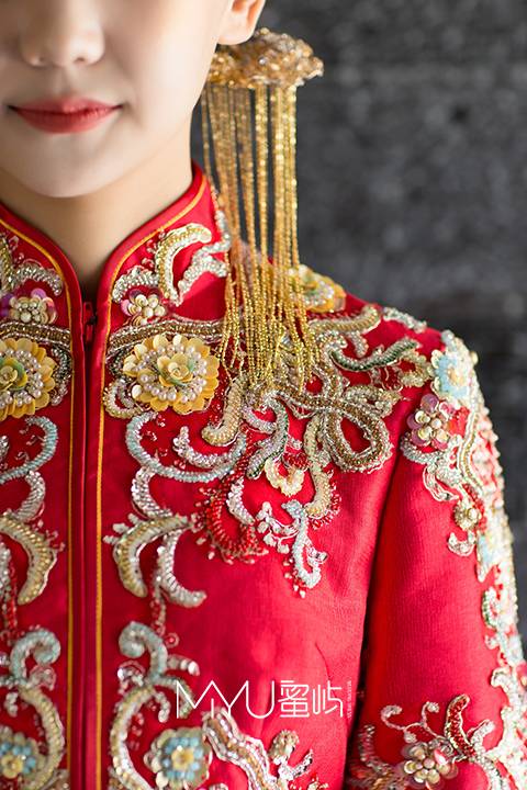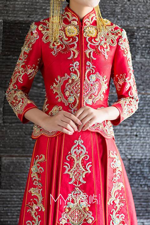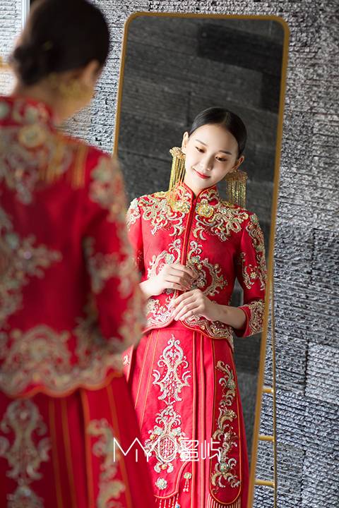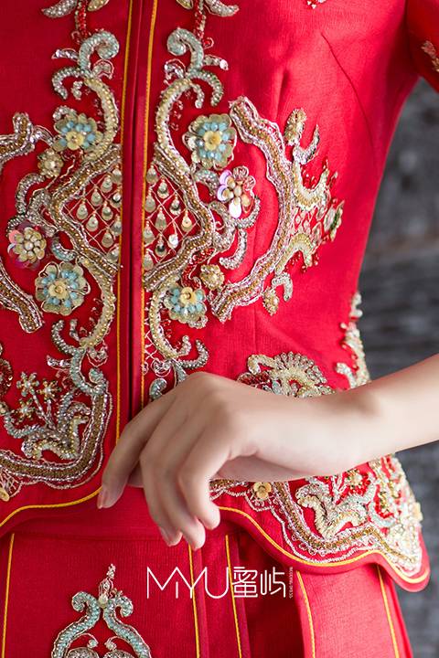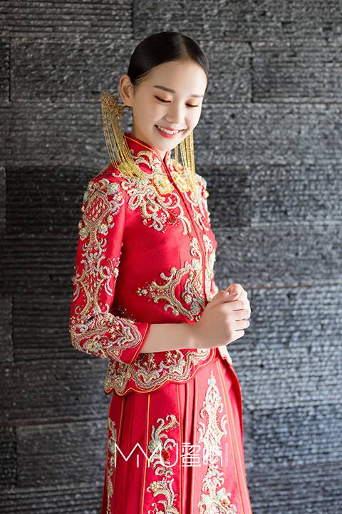 水波裙摆富贵红秀禾服