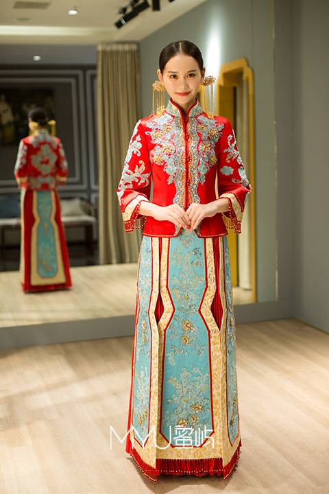 裙褂采用异型设计,华丽中带些俏皮,高雅而不失清新