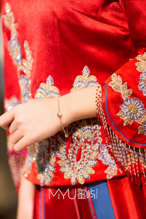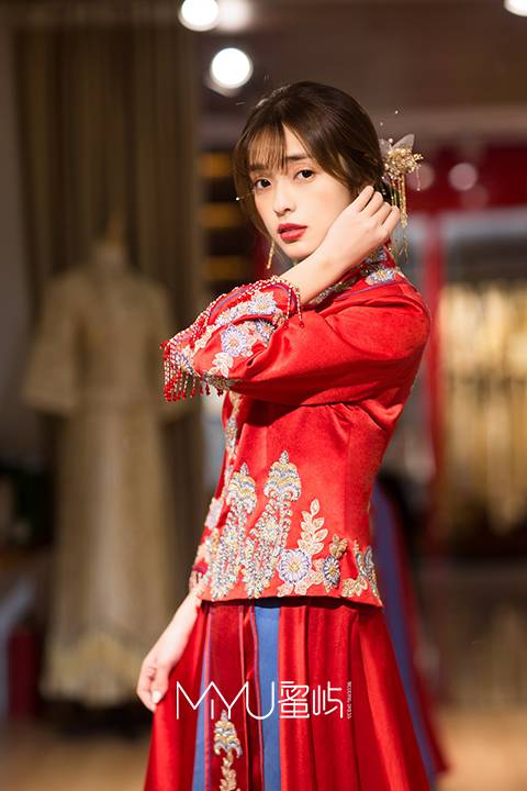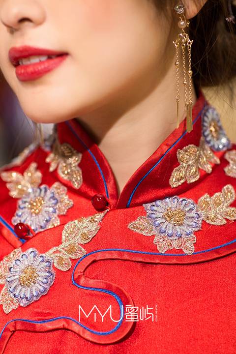 右襟玉石扣、极具特色的中国红色调,都将古典完美阐述