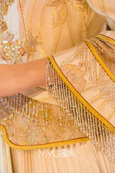 香槟金珠串流苏马来褂