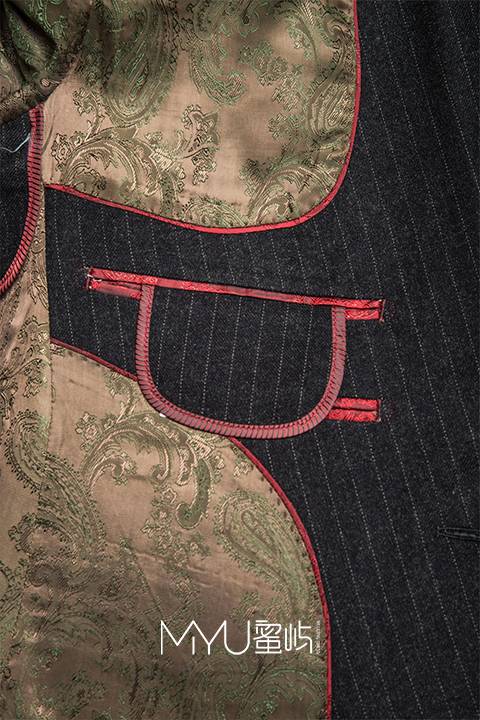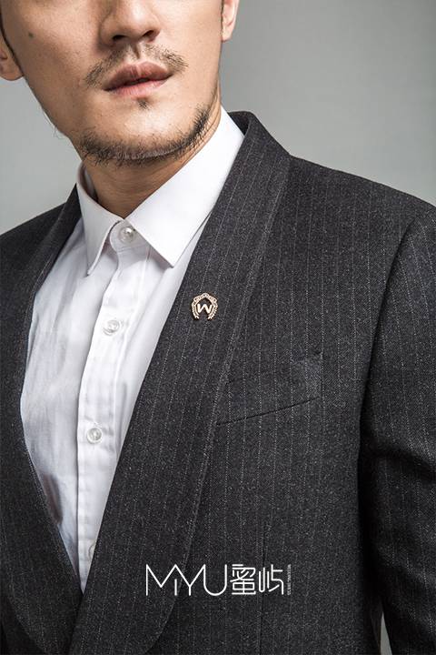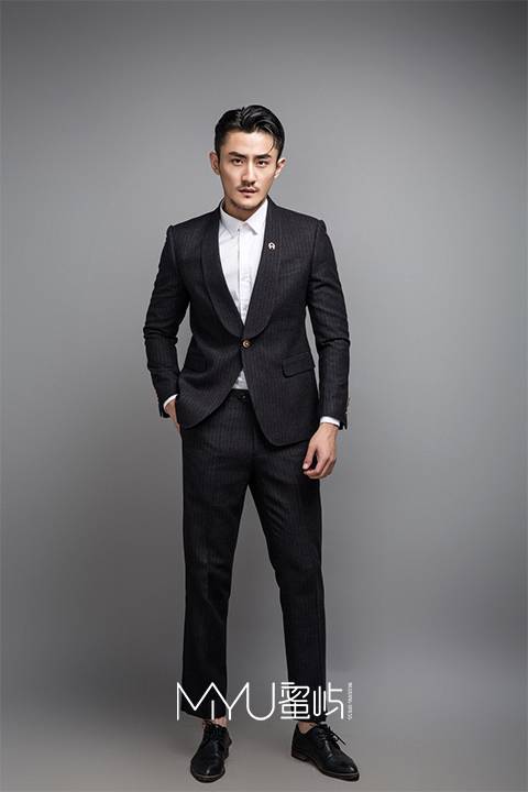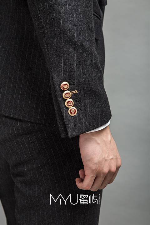 西服:青果领+单排一粒扣+袖口四粒扣(金属扣)西裤:小直筒