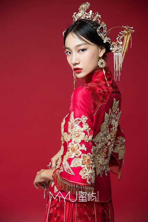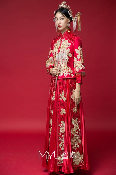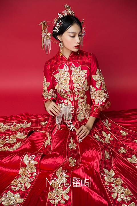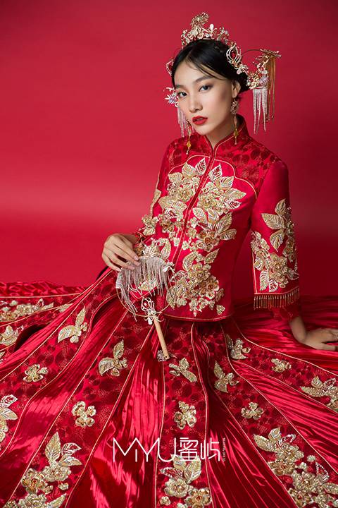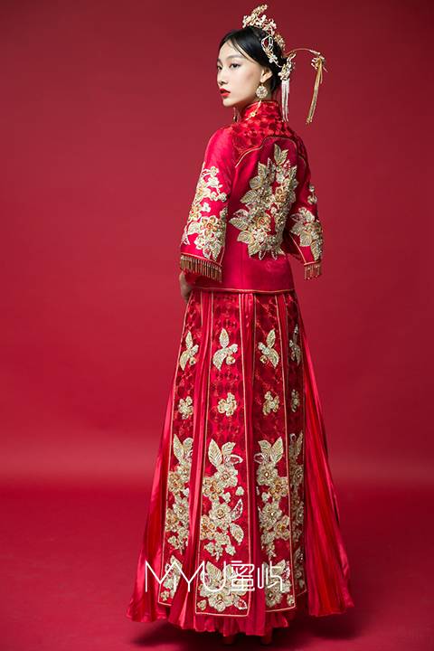 在传统中融入现代元素,精美丝质缎裙门融入百褶罗裙设计雅致古典刺绣搭配上金丝边镶嵌,极具古韵能够想象到盛世红妆,翠钿步摇的美丽模样
