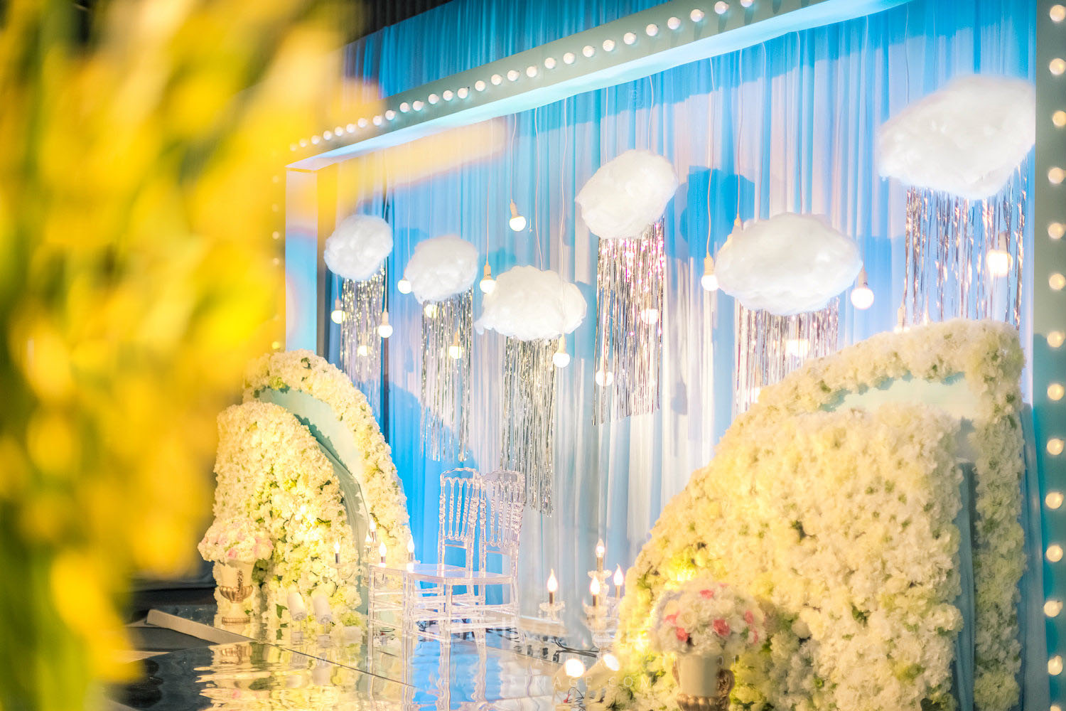 通往舞台的道路两旁是满天星,用欧式的蜡烛照亮这条路,女孩走入爱情的世界,去寻找她的独角兽,为她遮风挡雨,朦胧的灯光像月光一般,在月光下,为心爱的TA戴上心的戒指,这样两个人会永远深爱彼此,不离不弃。
