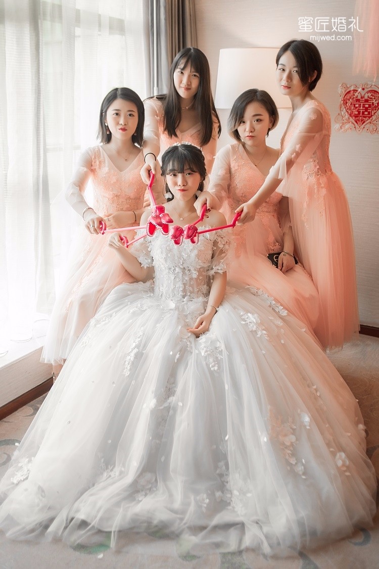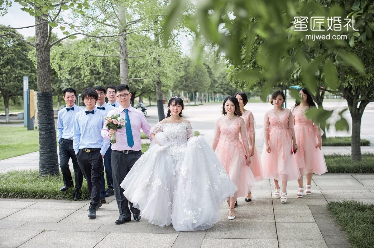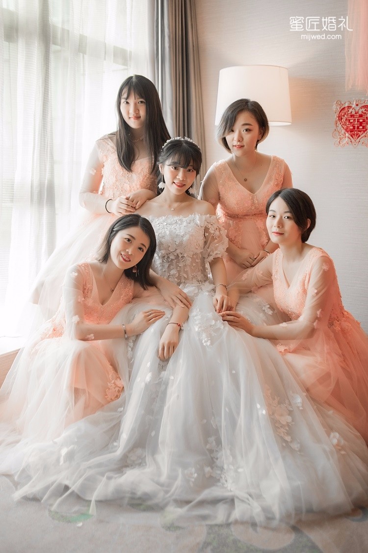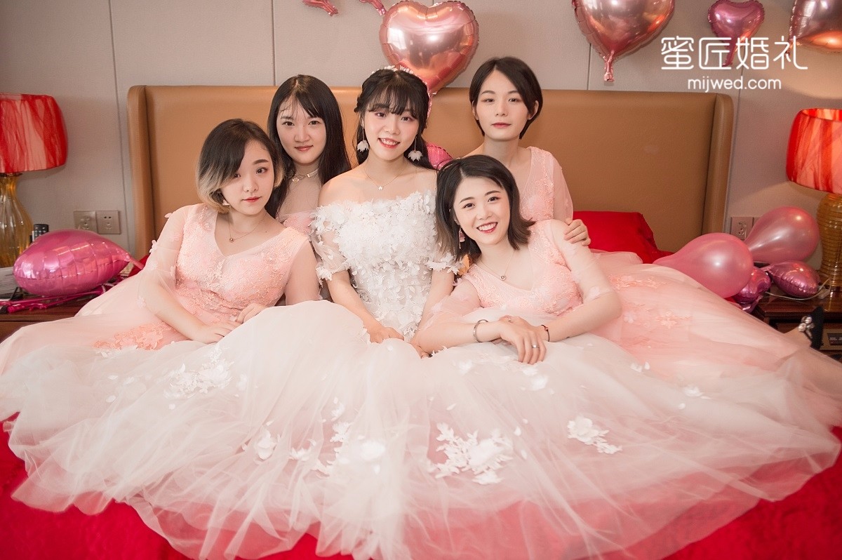 我的婚礼四个伴娘,四个伴郎,礼服都是偏粉色系的,在这家网店买的,很划算。