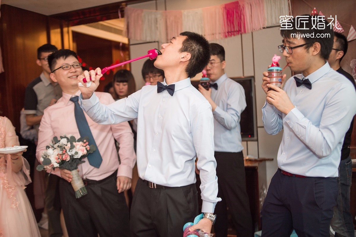 接亲游戏,一人一个小猪佩奇的杯子,跑较慢的,要喝完整杯可乐。还有就是食物里放芥末、辣椒粉,哈哈~老公比较注意形象,整的多的都是伴郎~