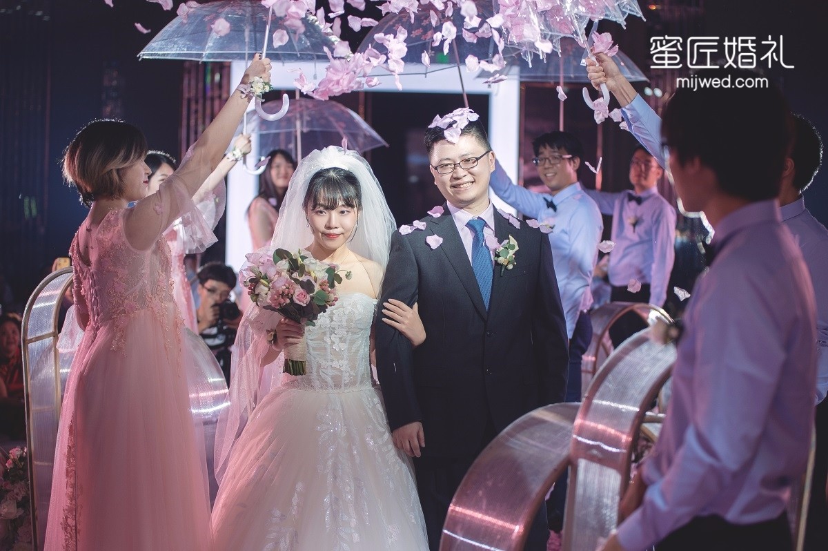 我老公有个朋友也是选了蜜匠,向我们推荐了他家,我们参考了下,觉得性价比很高,就去实体店谈了下。后来下载了他家的APP,看了很多的爆款套餐和定制案例,也对婚礼有了个了解。