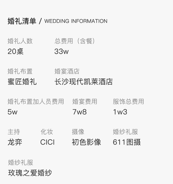 PS:APP有个功能,可以帮助新人查看预算分配,社区有很多同城新娘分享备婚的一些经验~我觉得这个还蛮不错的。