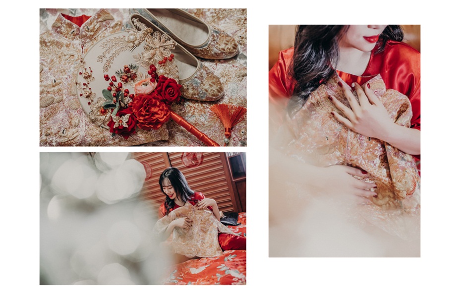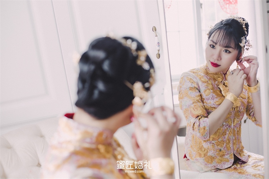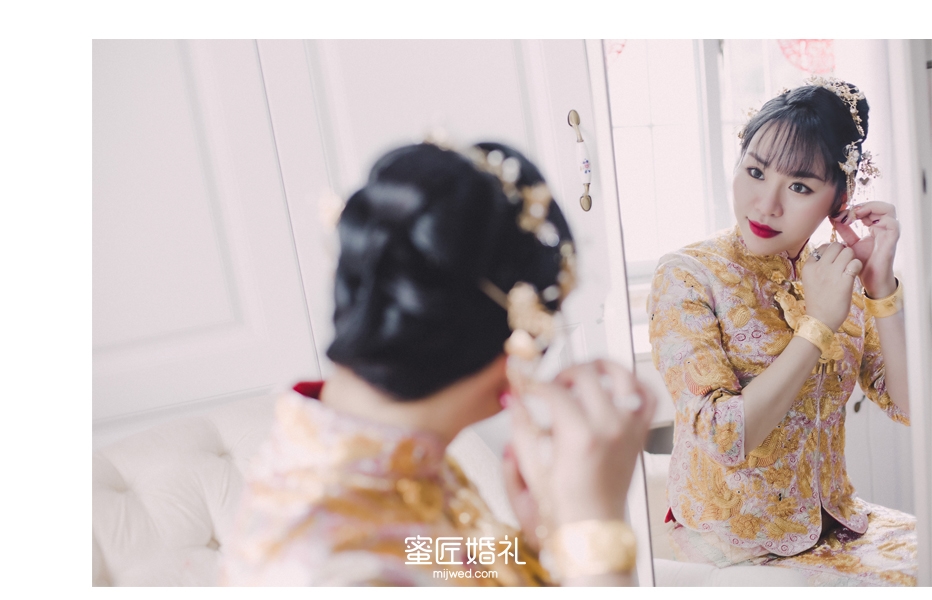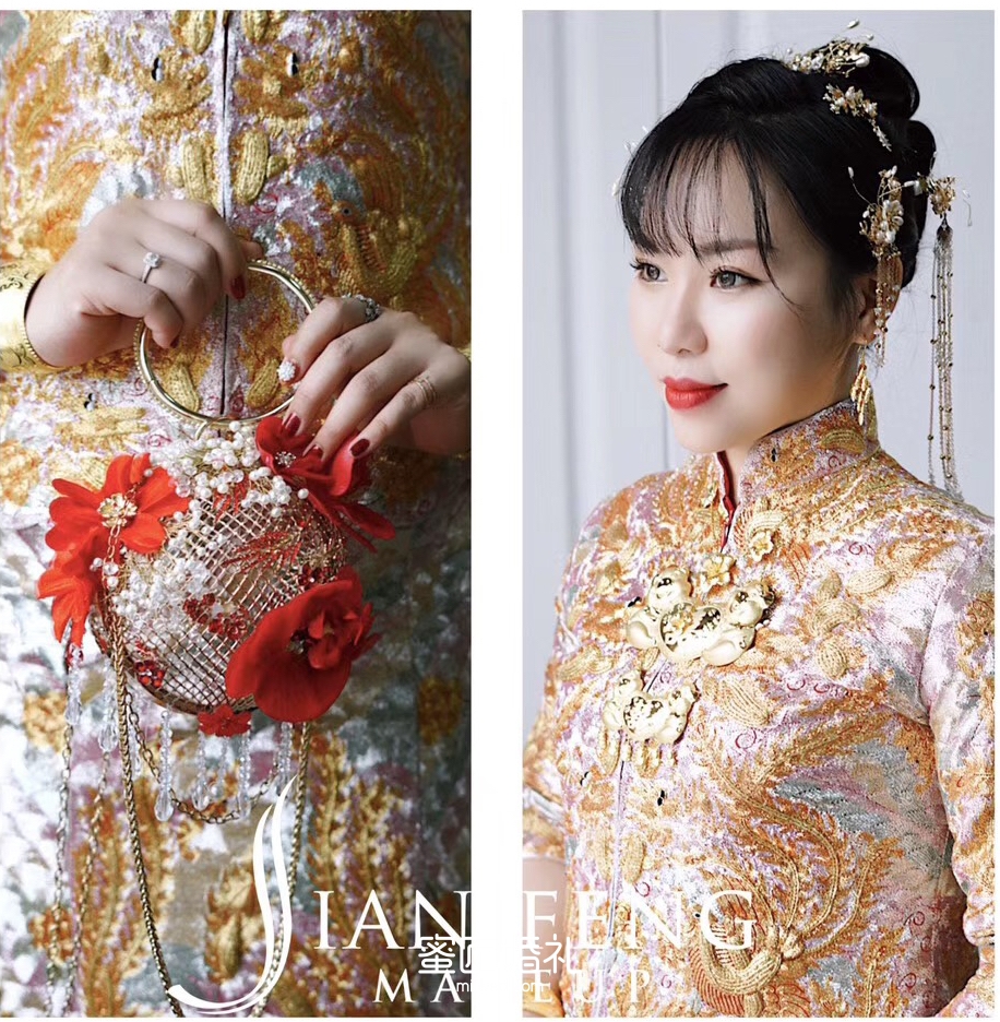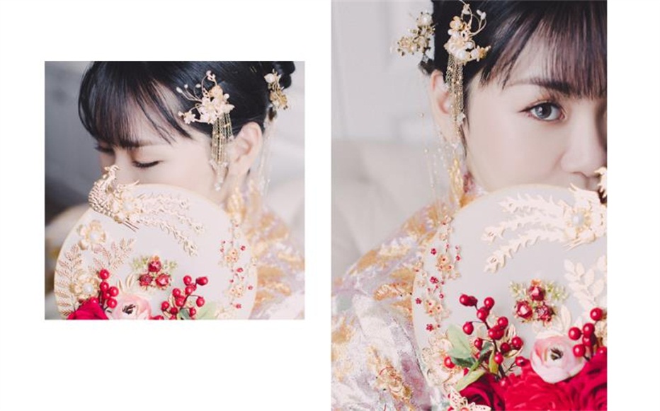 作为女人,谁都想将自己较美的一面展露出来。从头纱到礼服,从配饰到婚鞋,估计不会有人比自己更熟悉的了,其实就是在自己的婚纱店选衣服,不过我的龙凤褂跟主纱,包括迎宾纱、演出纱、礼服都是专门给自己订做的。