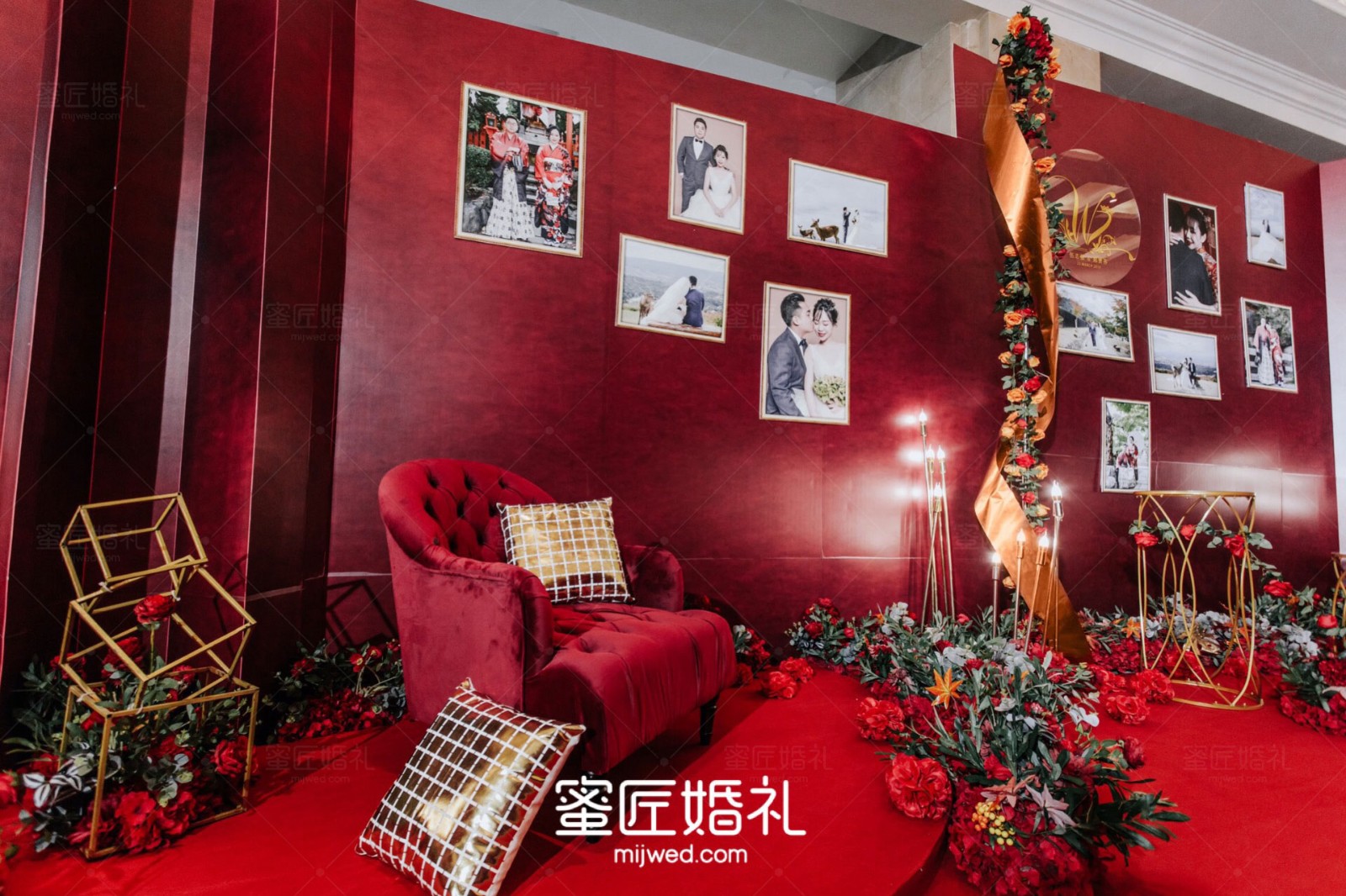 婚礼现场的工作人员都很细心,很到位,主台搭的很好,勃艮第红与璀璨金的碰撞,色彩高级浓郁有质感,所有人都说很美很大气,感觉很贵哈哈。